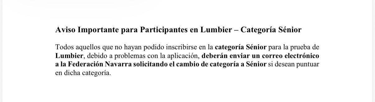 Aviso Importante para Participantes en Lumbier – Categoría Sénior